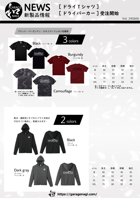 2024アパレル[ドライTシャツ] [ドライパーカー]受注開始
