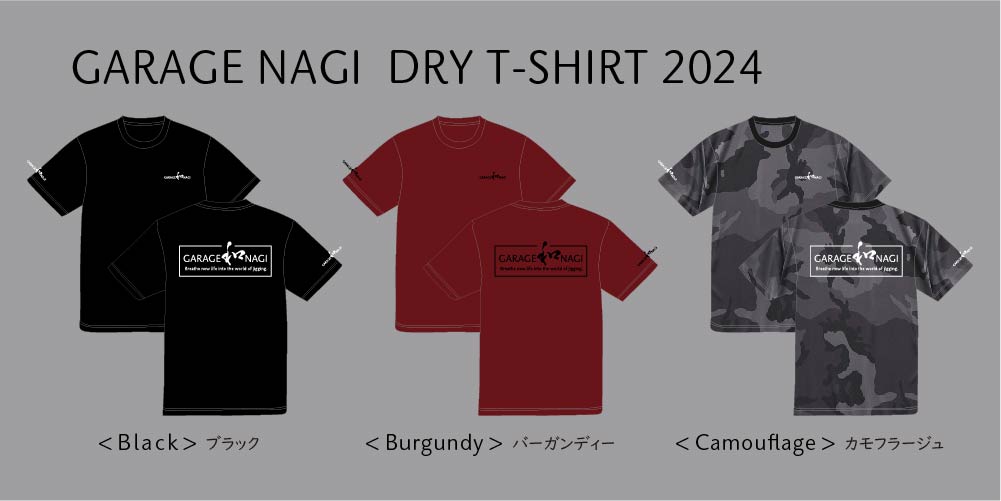 「2024ガレージナギドライTシャツ」が登場。サイズはMからXXLまで4サイズ、3色(ブラック、バーガンディー、ブラックカモフラ)展開。※ブラックカモフラはXXLはありません。・「7月発売予定」1-->